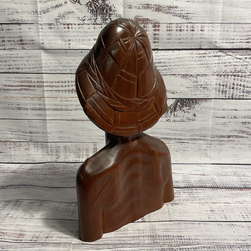 VTG. Hand Carved Wooden Elder Man Bust, Japanese? Sculpture