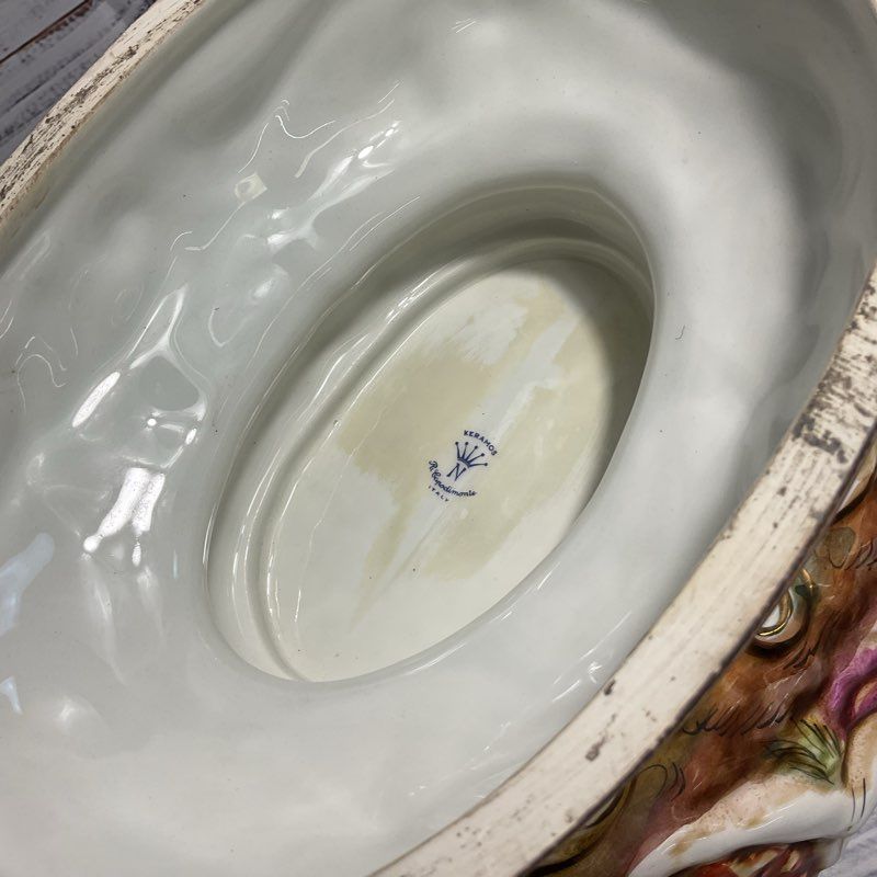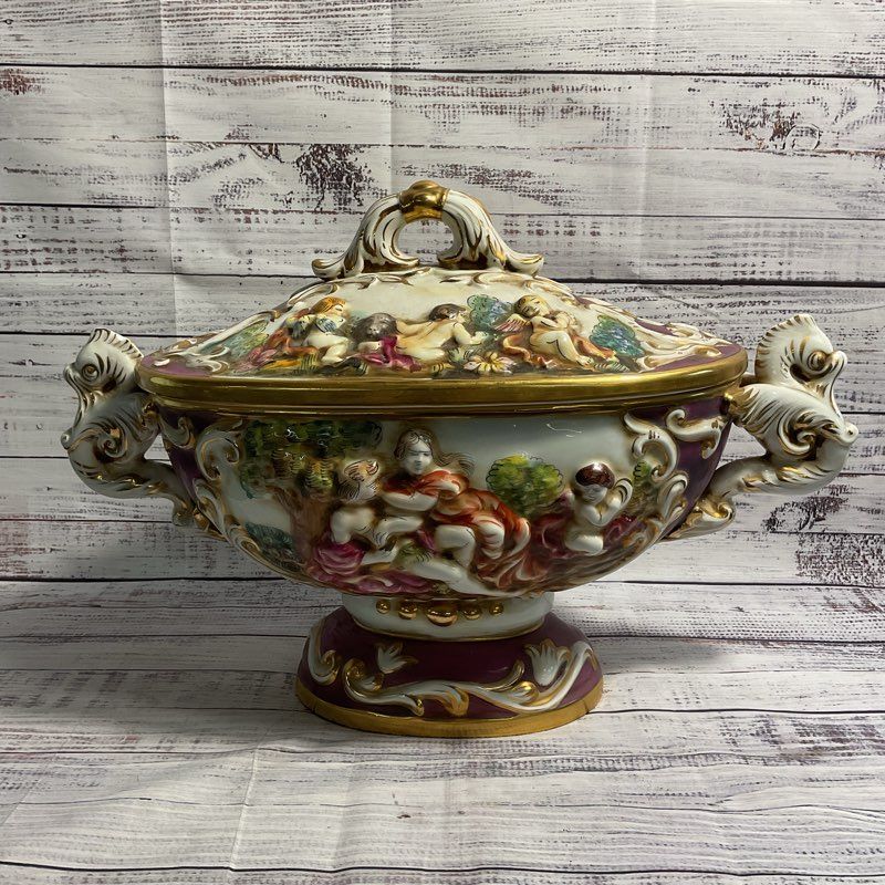 VTG Keramos R. Capodimonte Cherub Pedestal Bowl Lidded 20" Italian Tureen