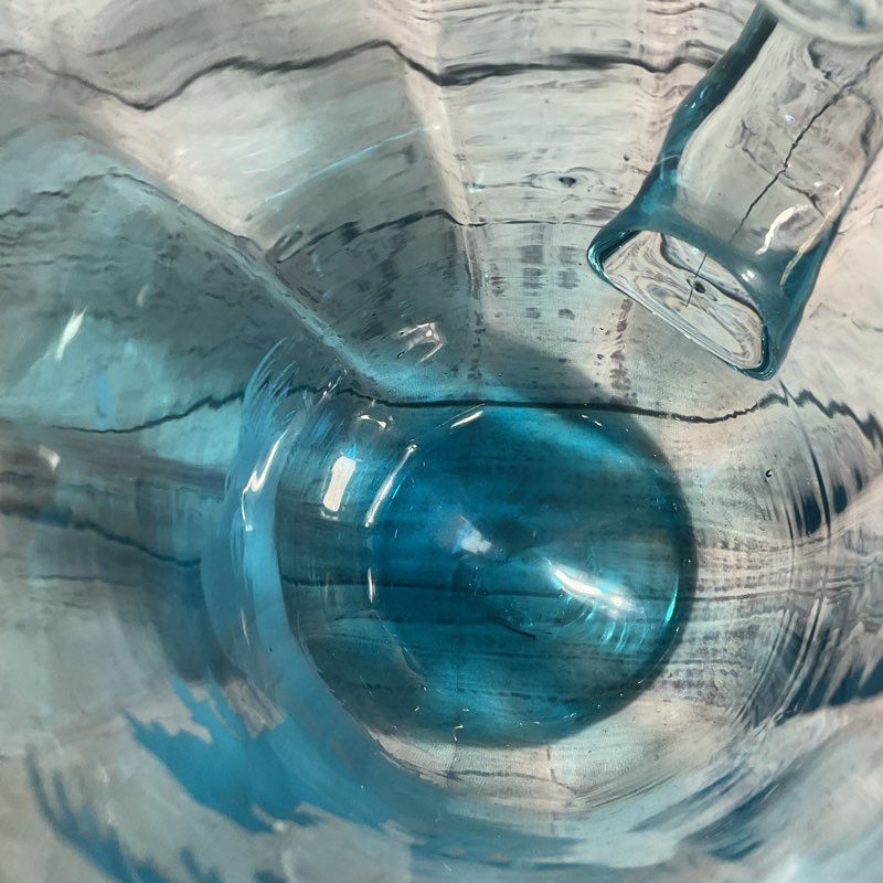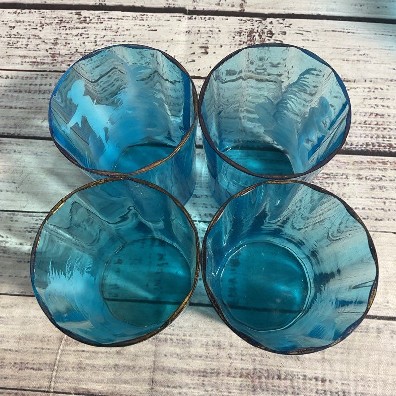 VTG. Mary Gregory Hand Painted Blue Glassware Pitcher & Cups 5 Pc. Set