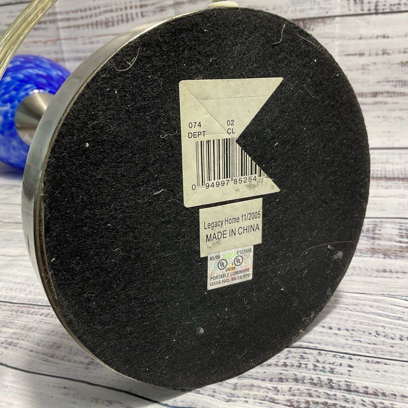 VTG. Mid-Century 22" Underwriter Laboratories Blue Art Deco Glass Table Lamp