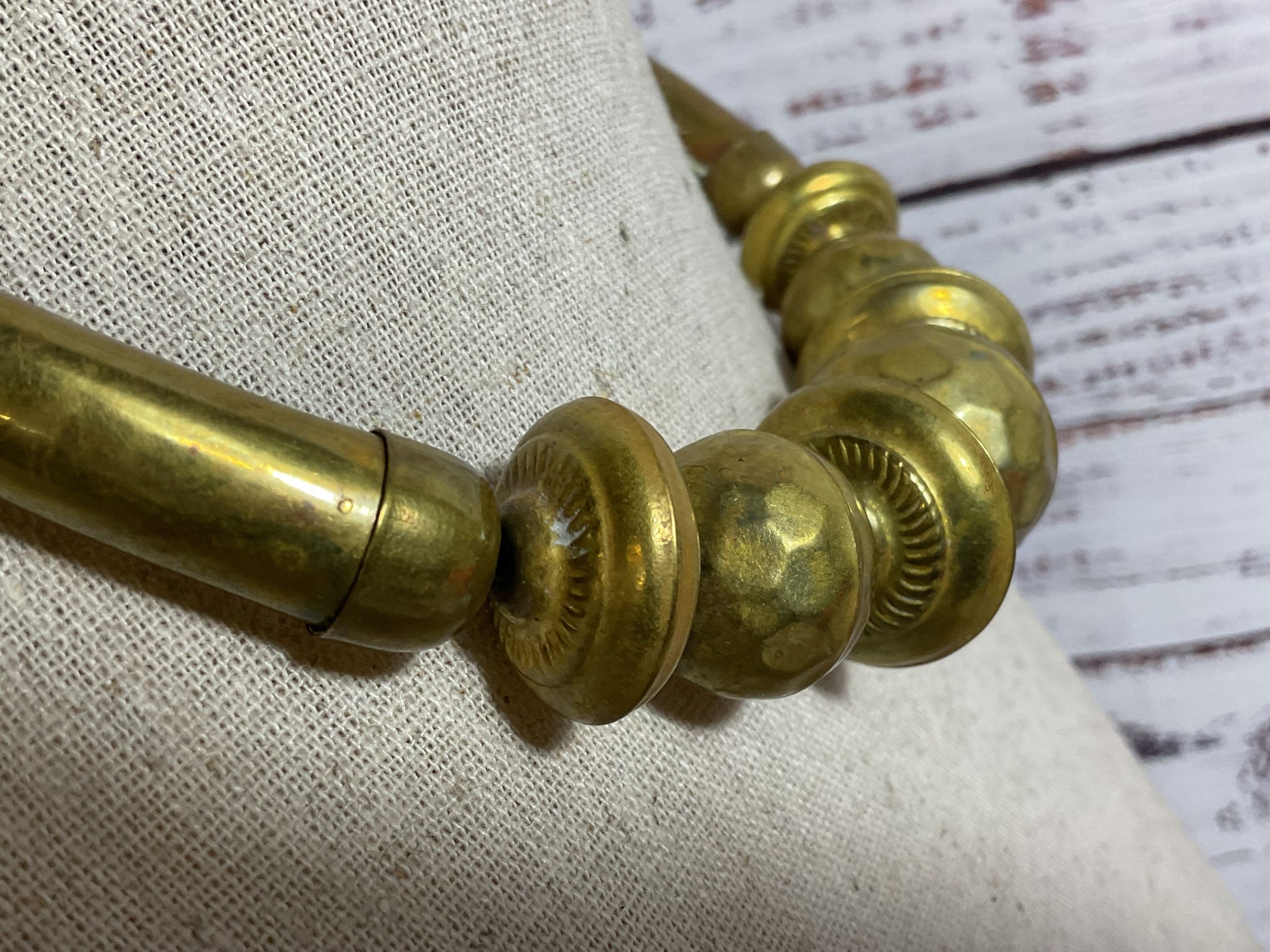 VTG. Modernist Hammered Chunky Brass Statement Necklace- 16"