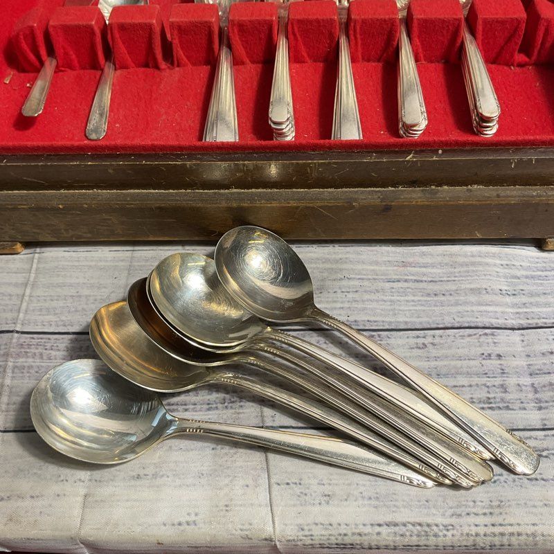 Type: Elaine Silver Plate 41 Pc. Flatware Set In Wooden Case