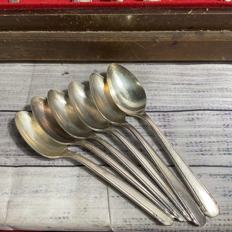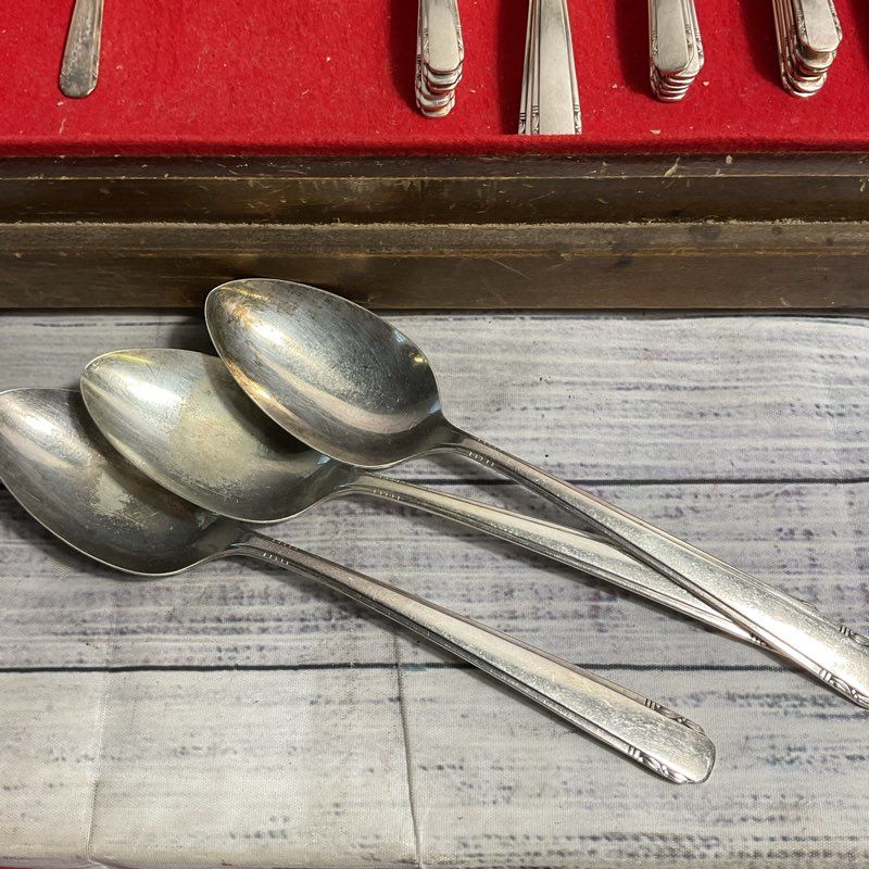 VTG. Oneida Community Elaine Silver Plate 41 Pc. Flatware Set In Wooden Case