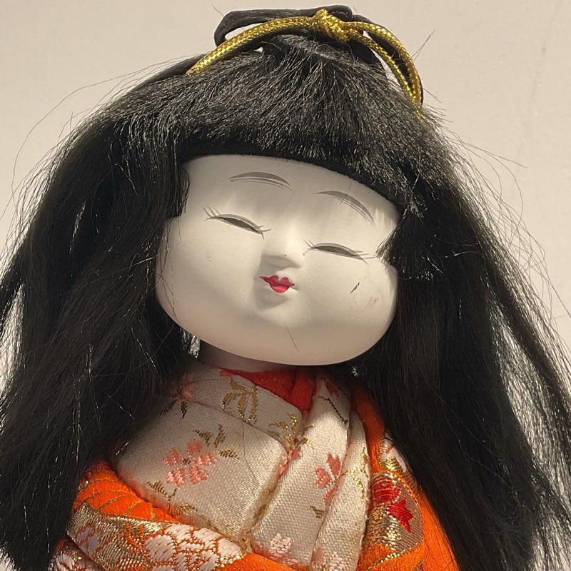 Description: Orange Kimono Kimekomi Doll Sculpture
