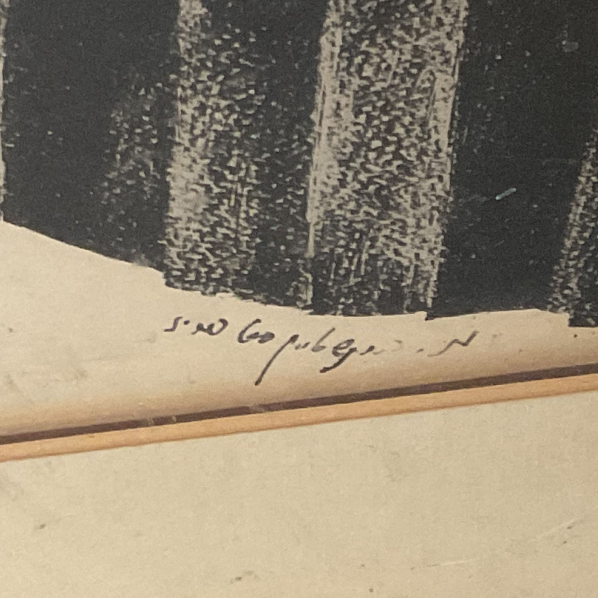 VTG. Pencil Signed Yiddish Pensive Man Abstract Lithograph FRAMED 33.5" X 25.5"