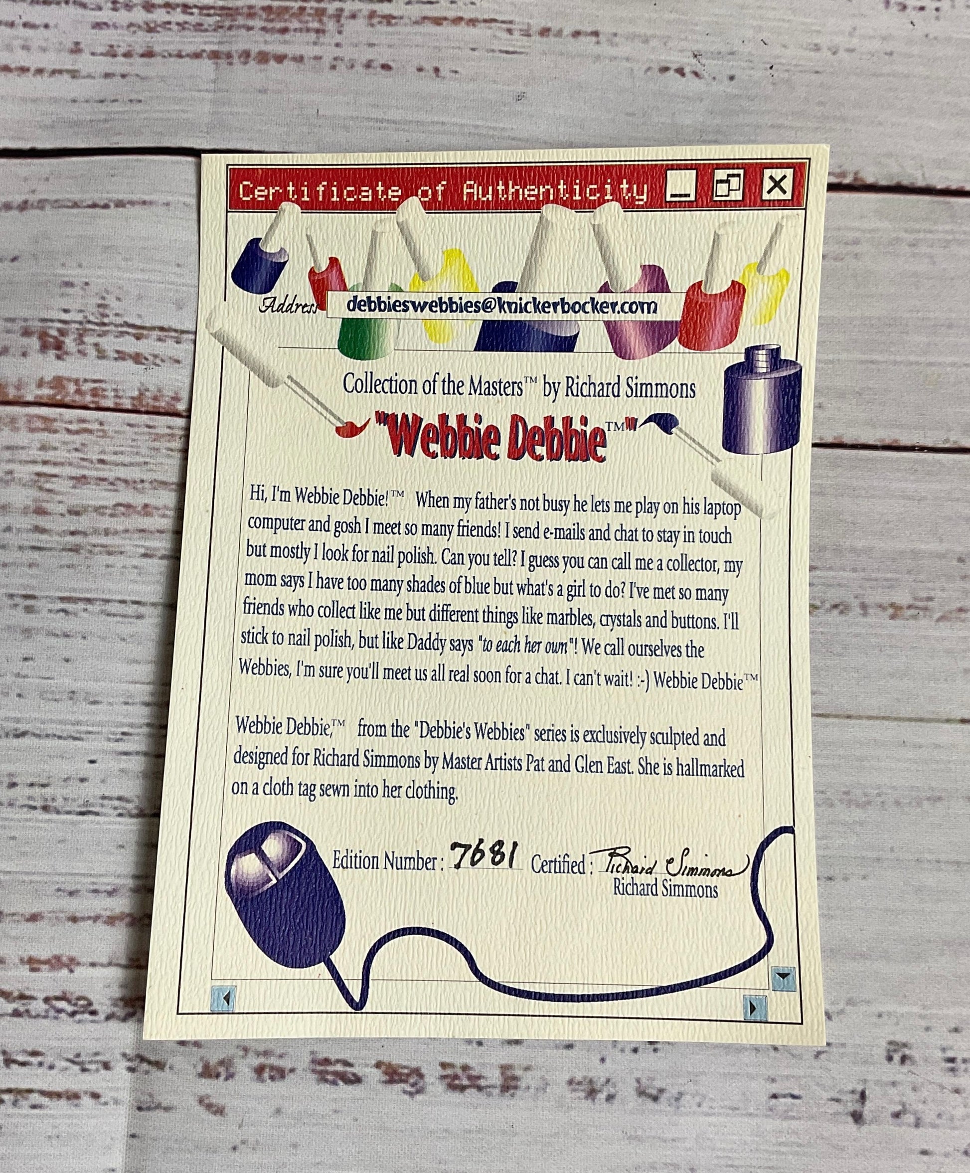 Additional Details: In good, previously used condition. Includes doll, computer, and certificate of authentication.