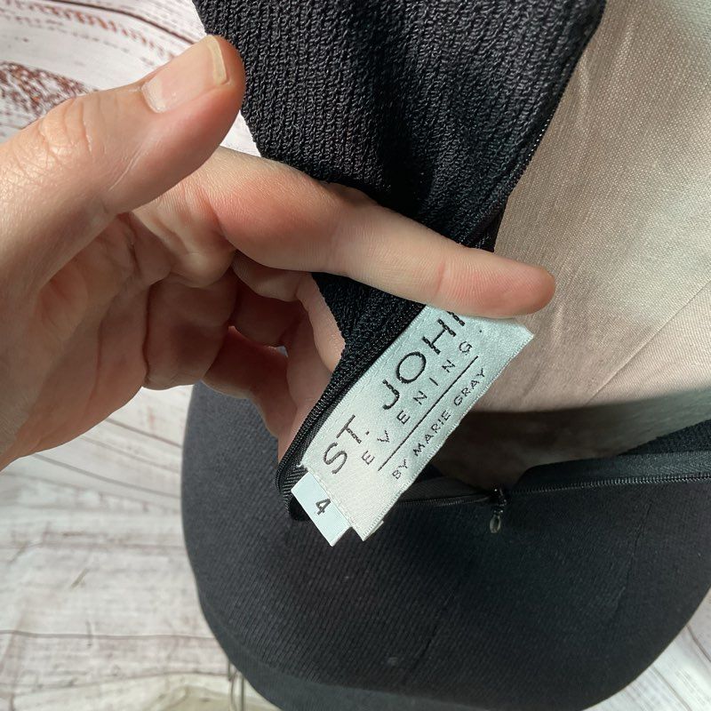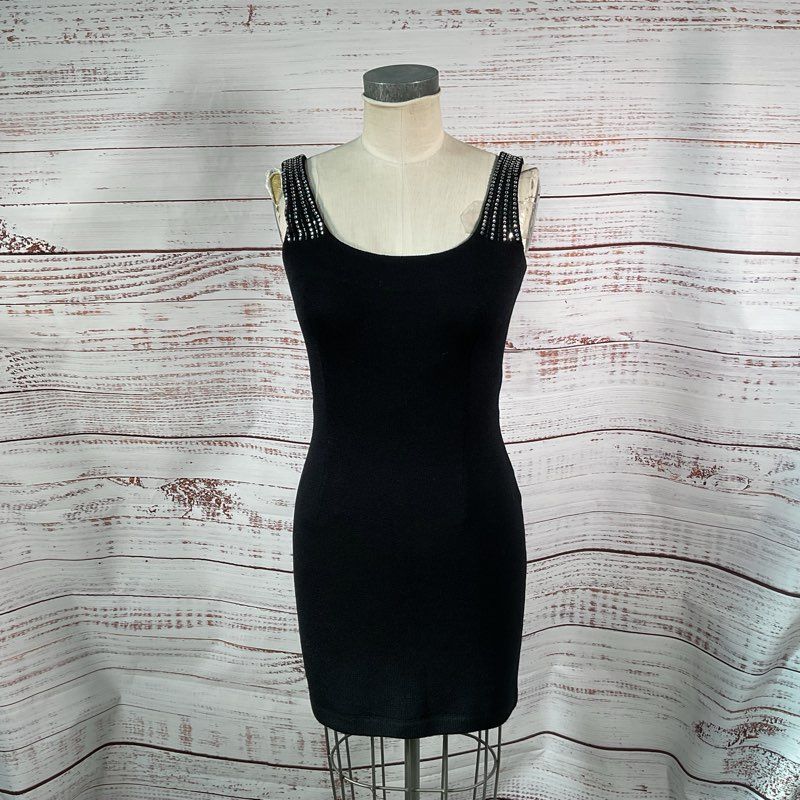 VTG. St John Evening Black Knit Rhinestone Detail Mini Evening Dress - Size 4
