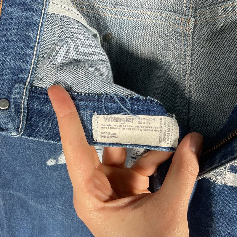 VTG Wrangler Custom Screenprint White Mercedes Car Graphic Jeans Men Size 36x34