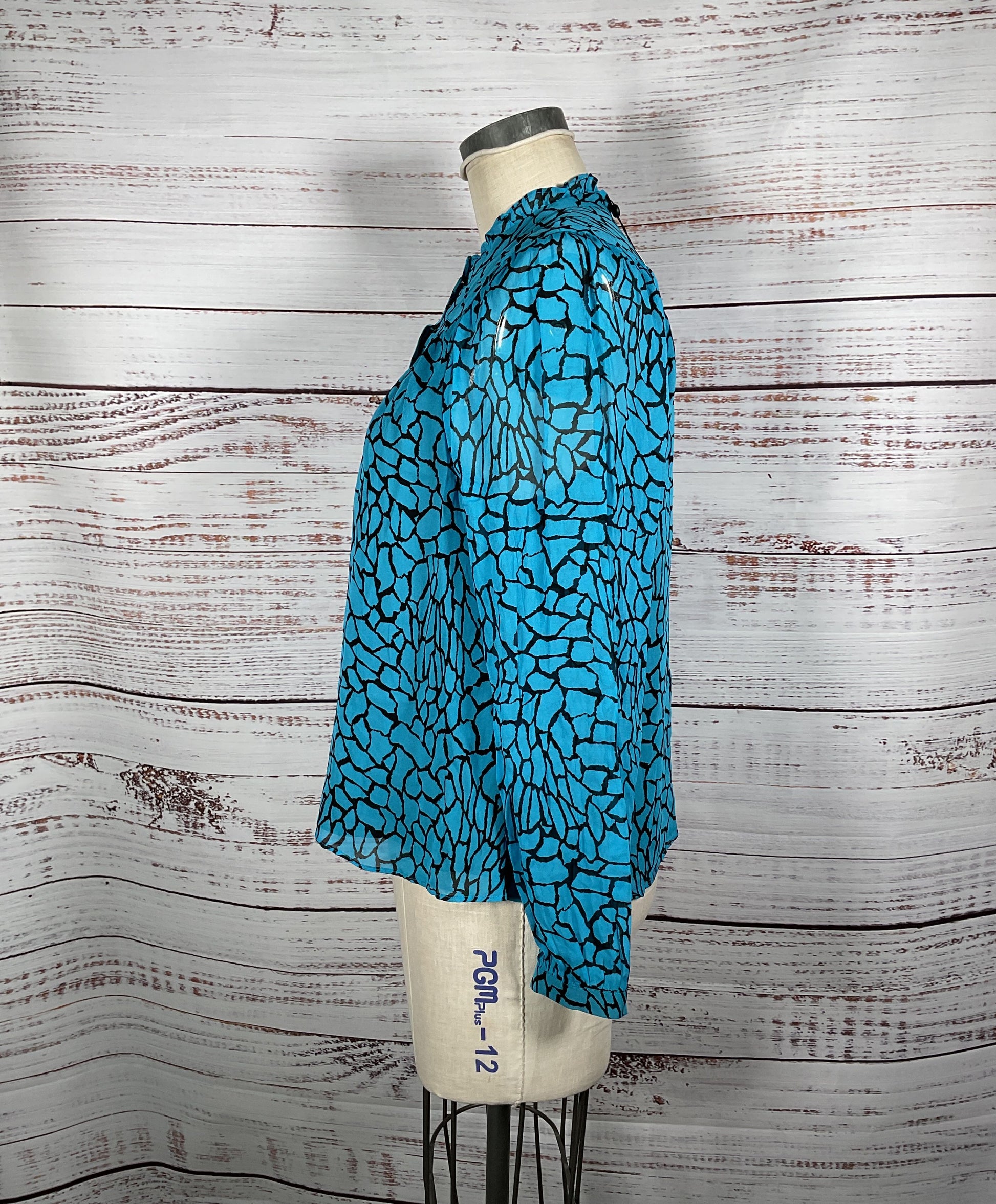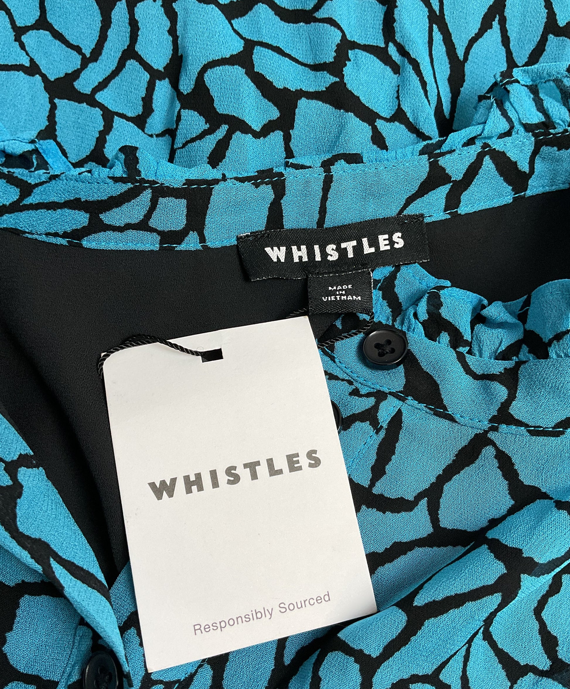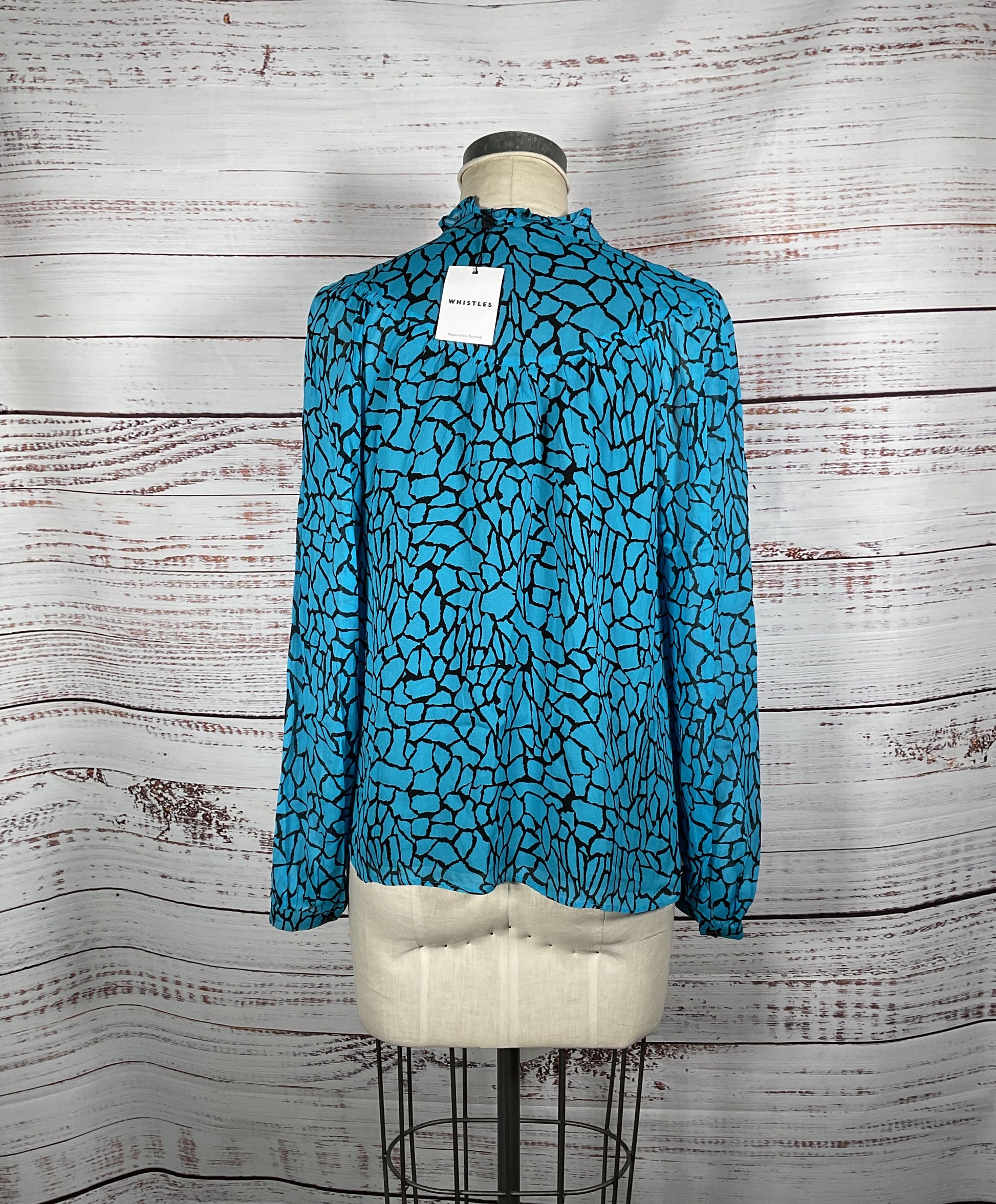 Whistles Terrazzo Button Up Front Blue and Black Patterned Blouse - Size 8