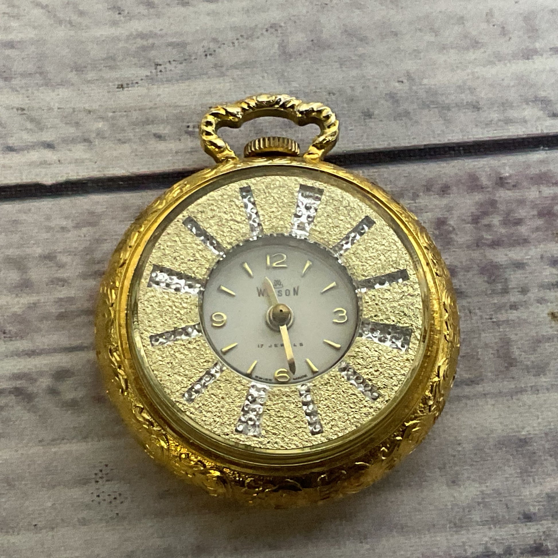 WILSON Gold Tone & Rhinestone Pocket Watch