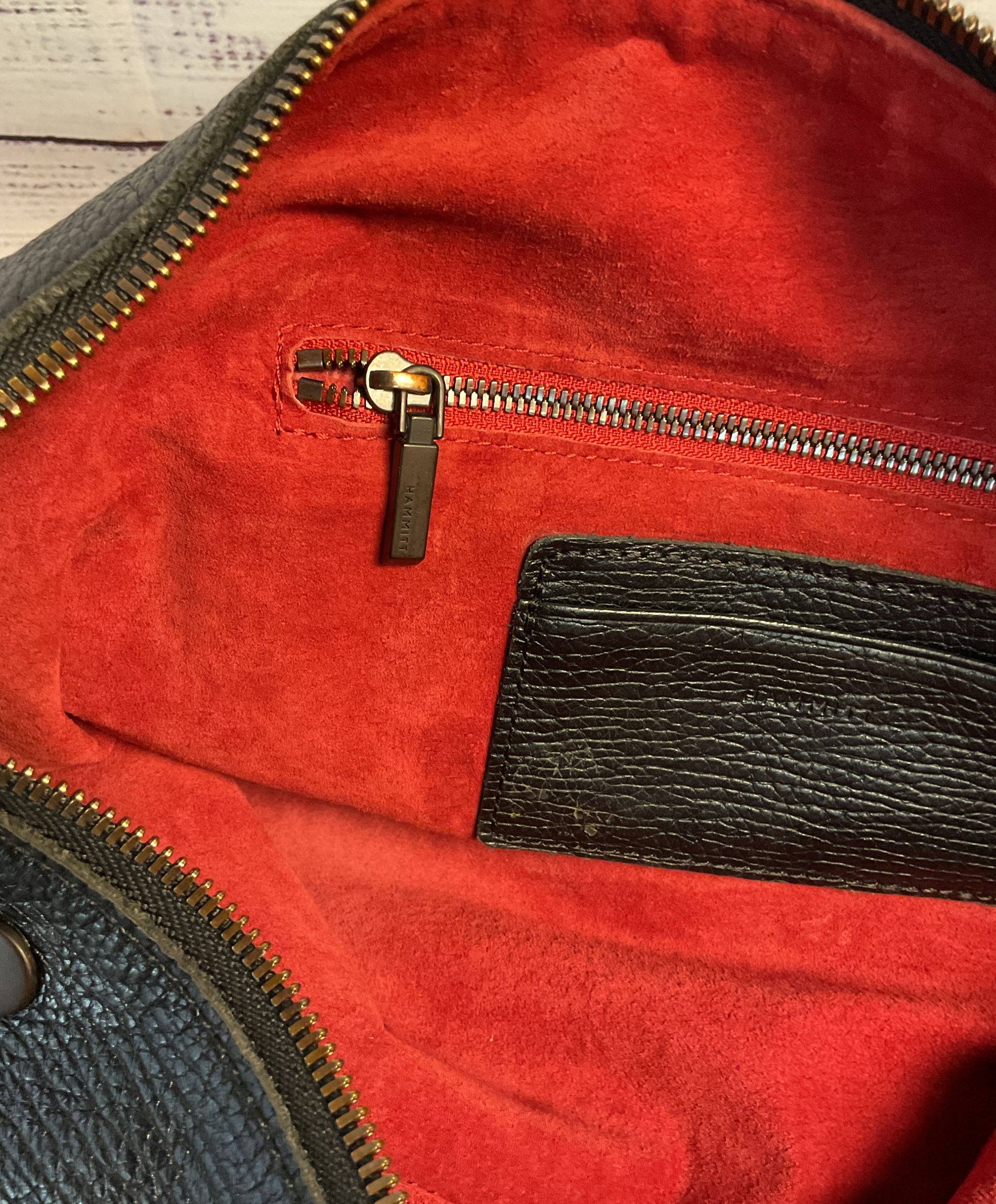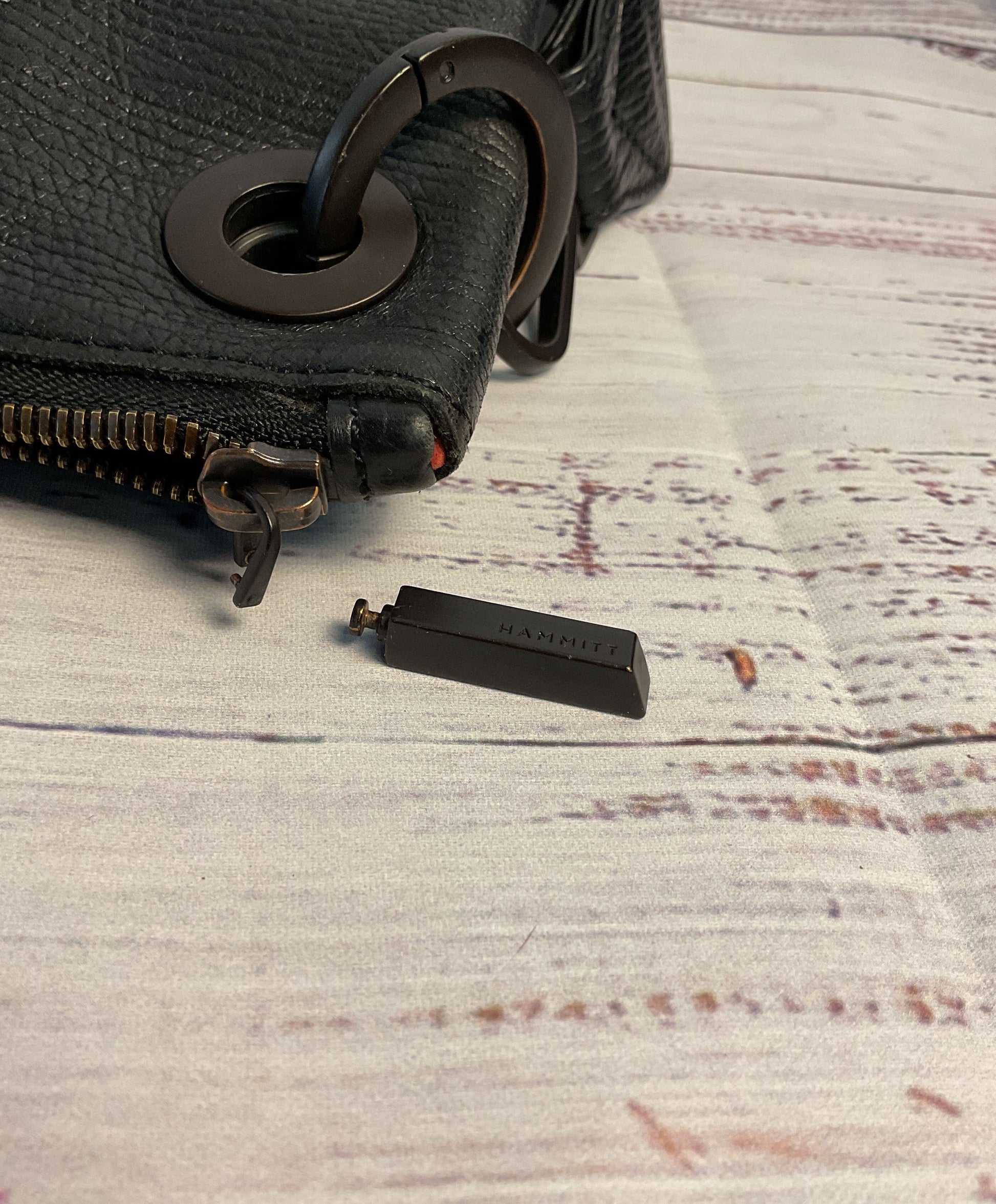 one of the two zippers is broken but the clasp is in the pocket of bag (see photo)