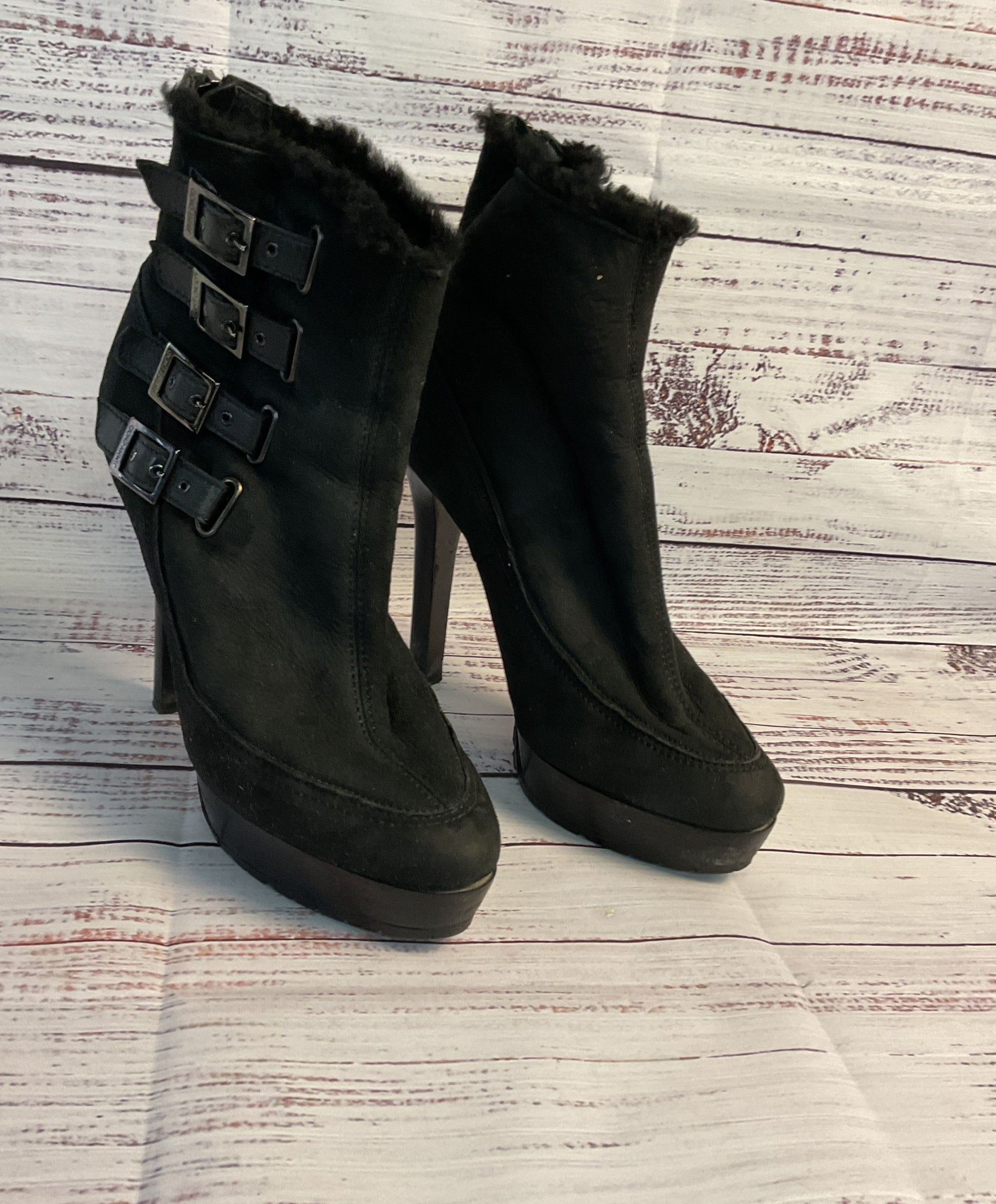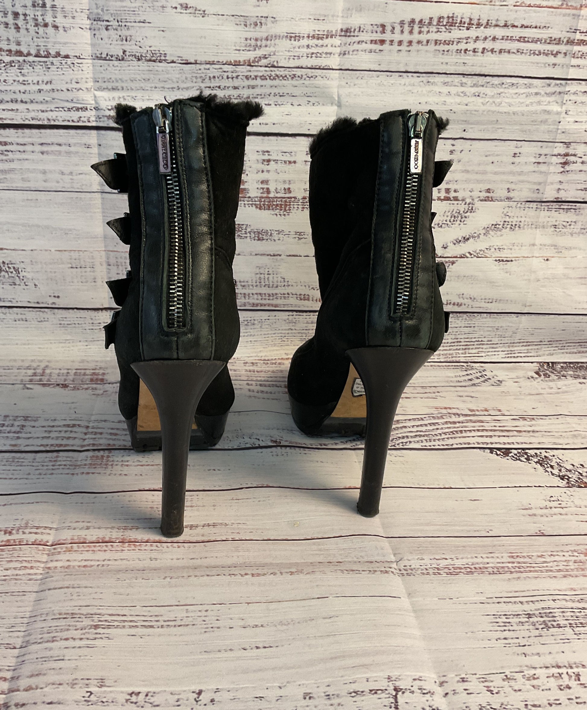 Women's Jimmy Choo Black Boot with fur lining and buckles Size 39 US 8.5