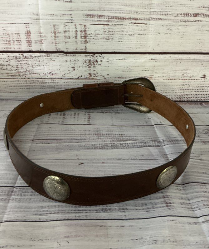 Women's Vtg Streets Ahead Brown Leather Belt with silver round hardware Size L