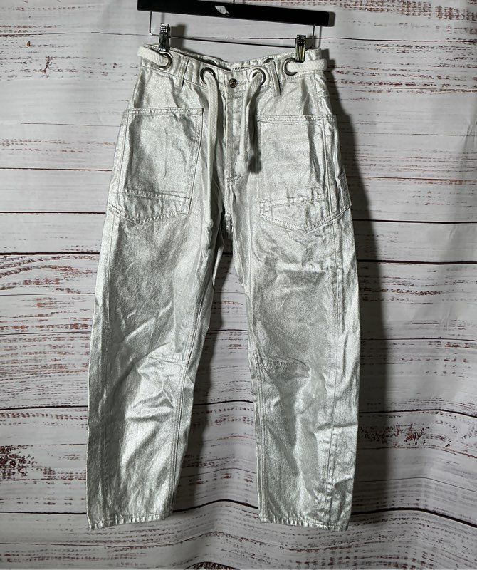 Women's We the Free Moxie Metallic Silver Low-Slung Barrel Silver Jeans Size 24