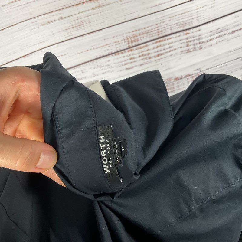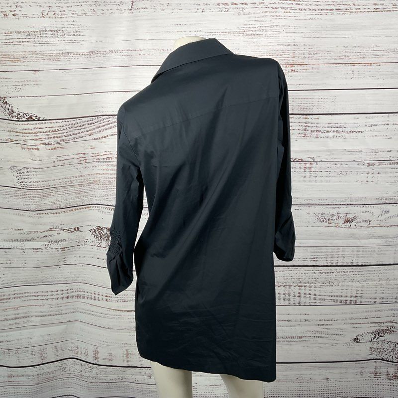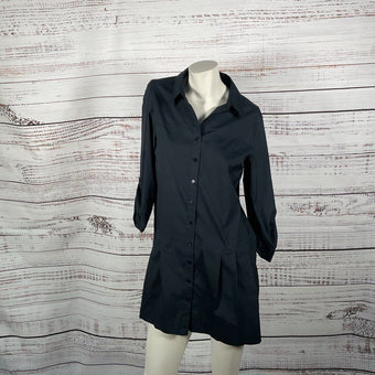 Worth New York Black Button Up Mini Shirt Dress w/ Cinched Sleeves Size M