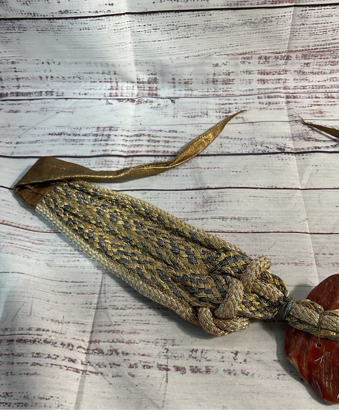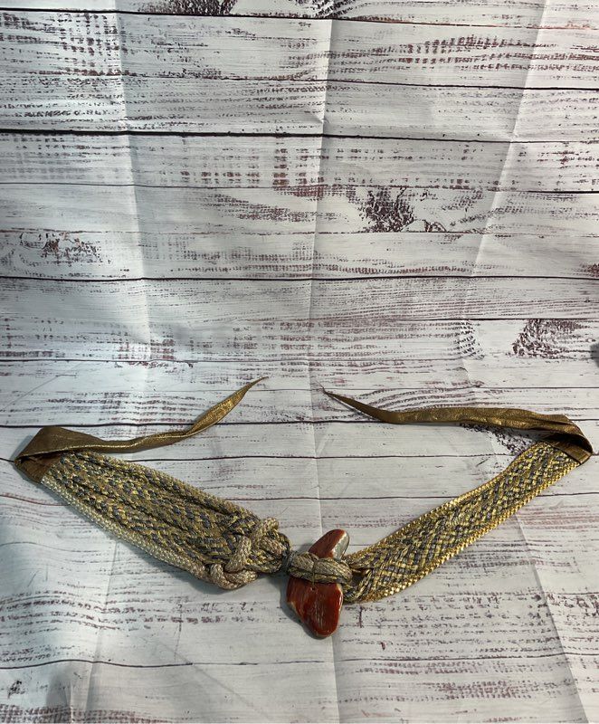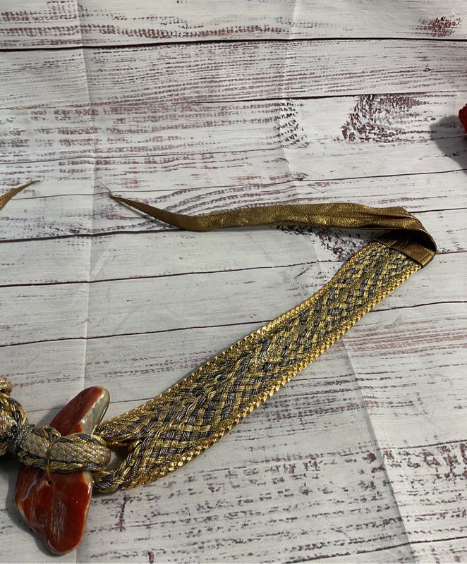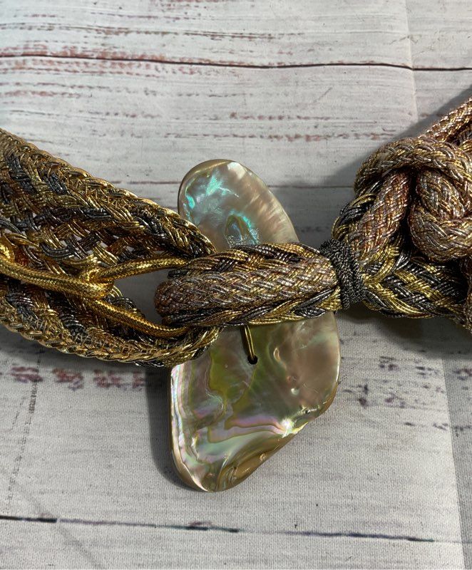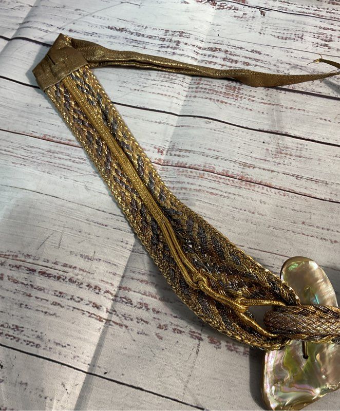 Woven Braided Belt Pearl Center Buckle Metallic Gold Tone Women's