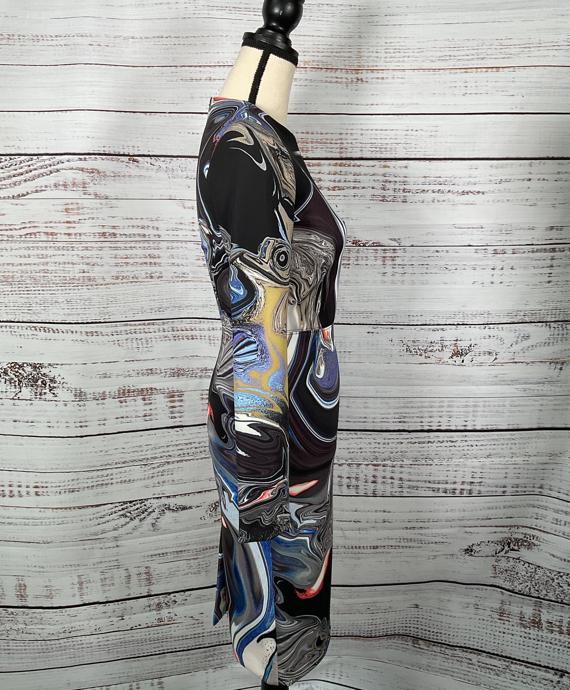 Yigal Azrouel Long Sleeve Scuba Dress Blue Multicolor 6