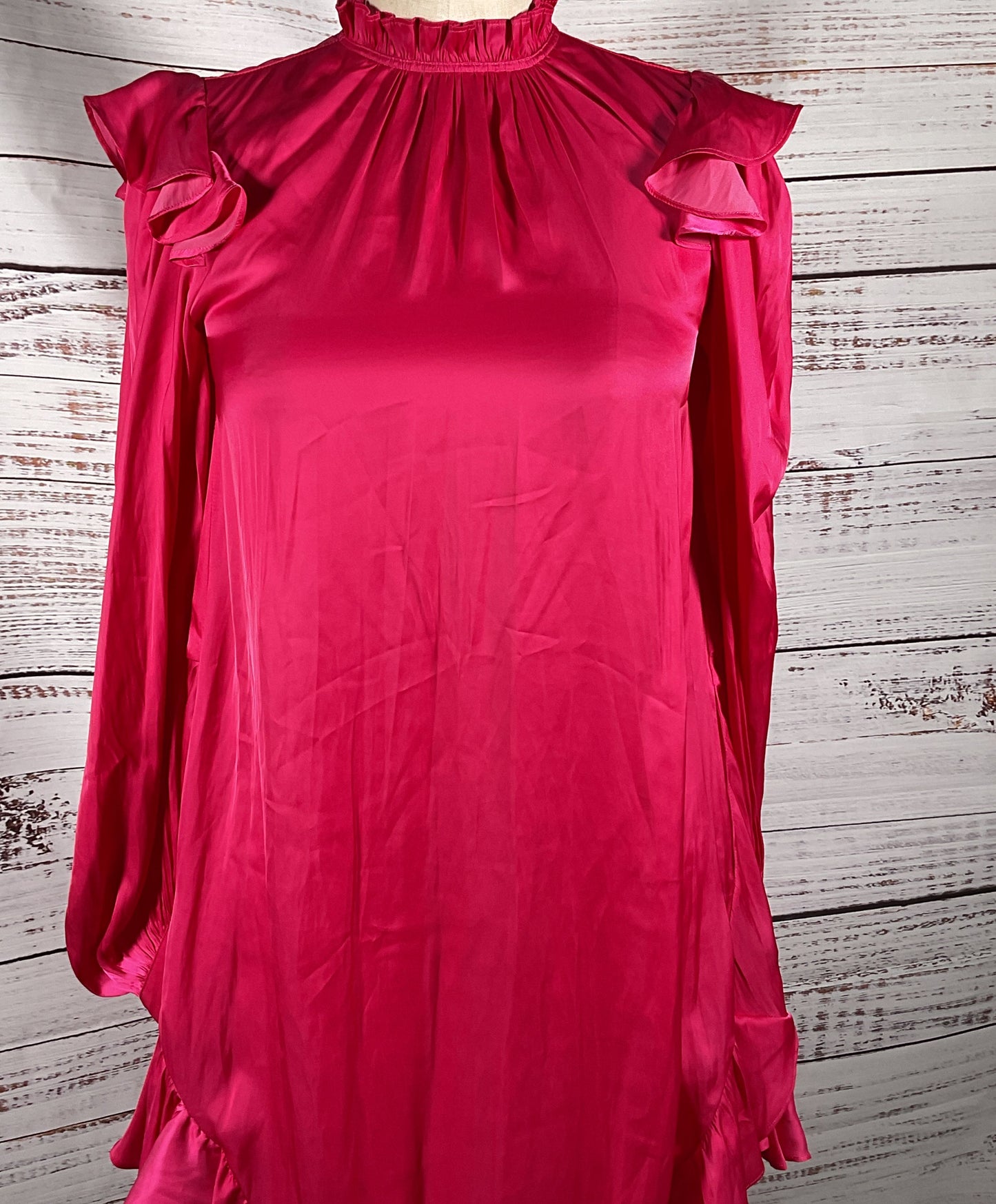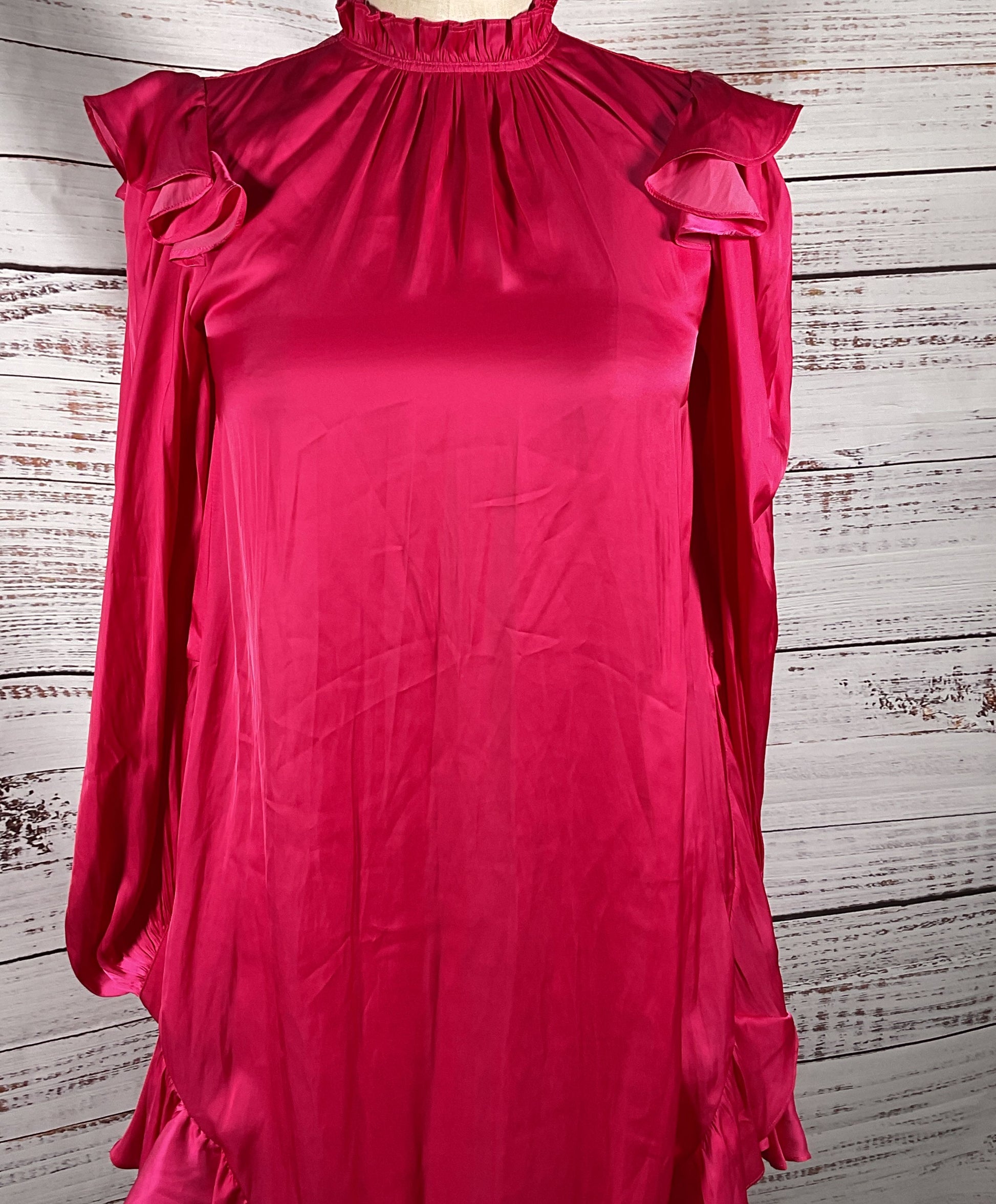Zadig + Voltaire Ruins Ruffle High Neck Dress Hot Pink XS