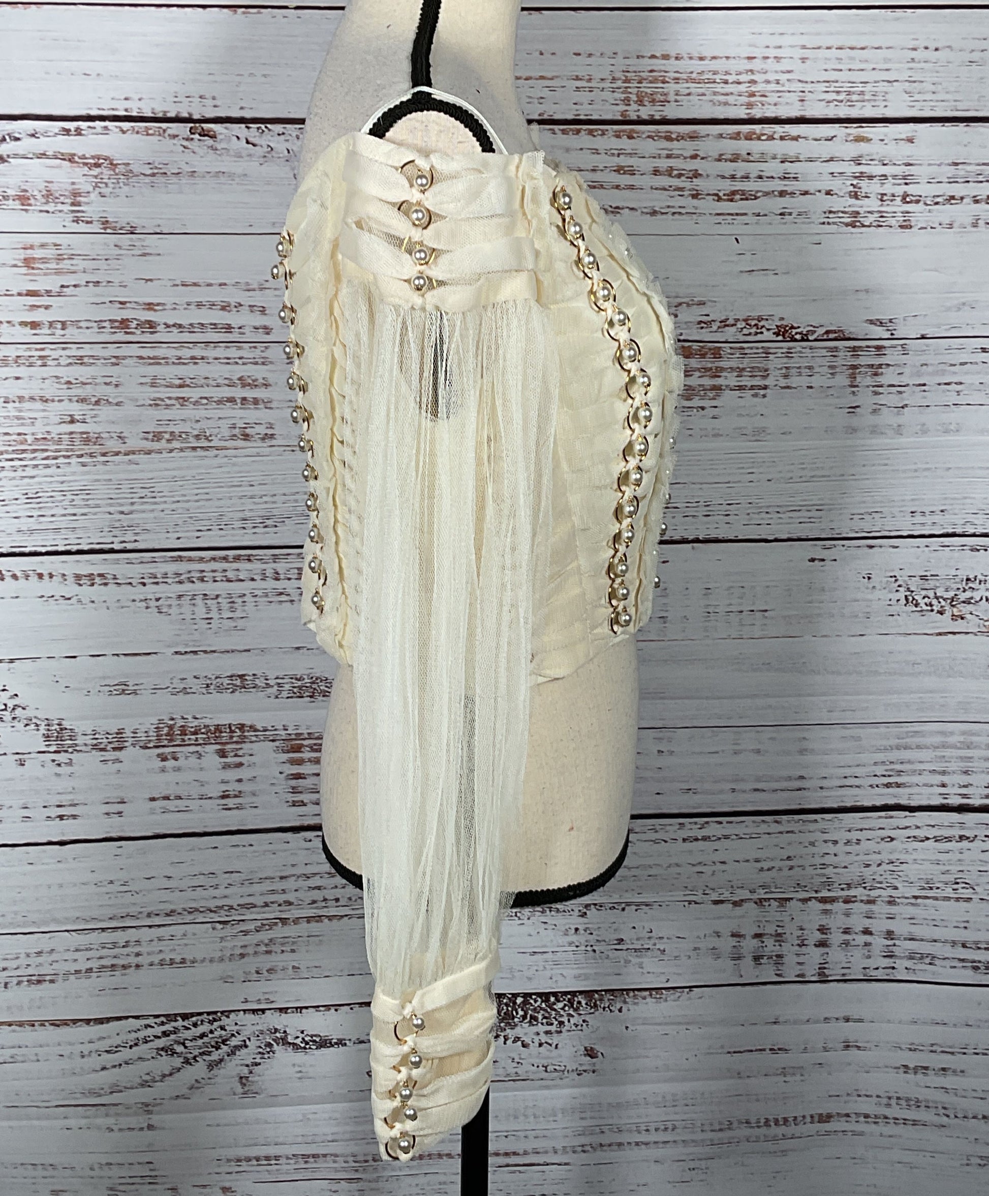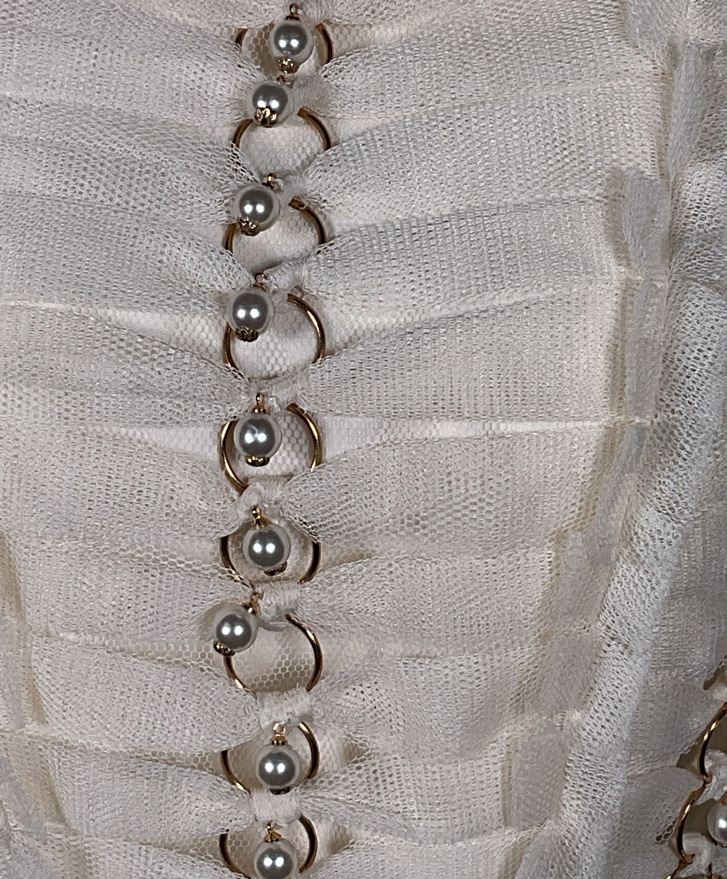 Zimmermann Mesh Off-The-Shoulder Embellished Tulle Top Milk 0
