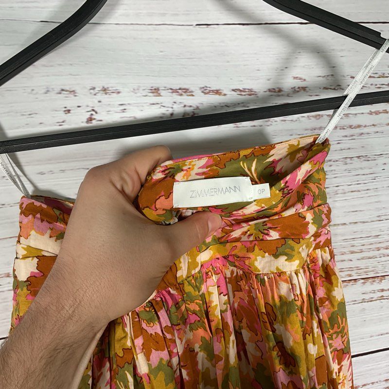 Zimmermann Warm Tone Khaki Floral Twist Waist Midi Skirt - Size P